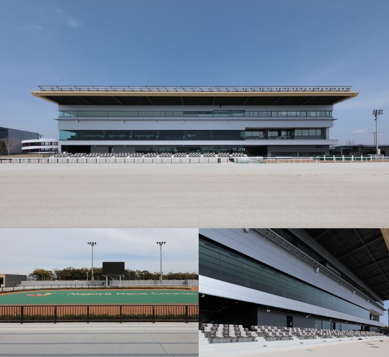 名古屋競馬場スタンド棟 主要用途公営競技場 工事場所愛知県弥富市 施主金シャチ名古屋競馬場PFI株式会社 建築株式会社熊谷組名古屋支店 竣工年月2022年3月 建物データS造 地上3階 5,463.57㎡